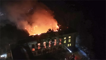 Hauptgebäude der früheren Jugendhochschule der FDJ in Flammen. Offensichtlich Brandstiftung. Der Saal einschließlich der Dolmetscherkabinen völlig zerstört. Das Gebäudeensemble steht unter Denkmalschutz und gehört Berlin. Wandlitz als derzeitiger Nutzer arbeitet eigentlich an einer Nutzungskonzeption.