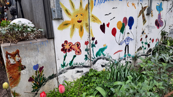 Enkelinnen (7 und 5 Jahre alt) haben das Wandbild im Vorgarten aufgefrischt