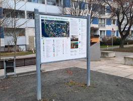 Erneuerte Kieztafel in Allende I aufgestellt, finanziert aus Mitteln der Kiezkasse, erstellt in ehrenamtlicher Arbeit
