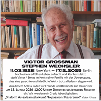 Trauerfeier für Victor Grossman (11.03.1928-17.12.2025) auf dem Dorotheenstädtischen Friedhof